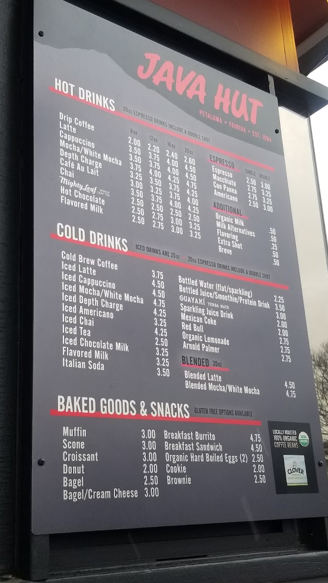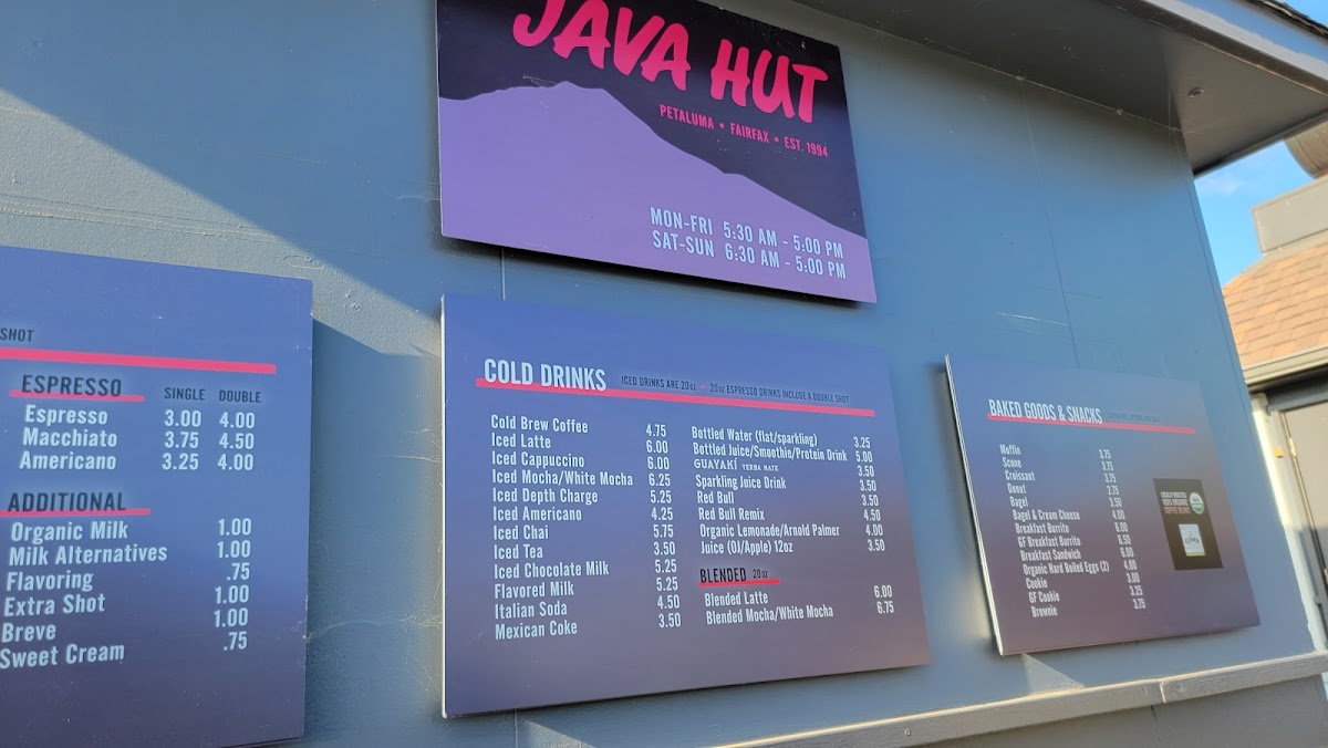 Java Hut - Petaluma Menu
